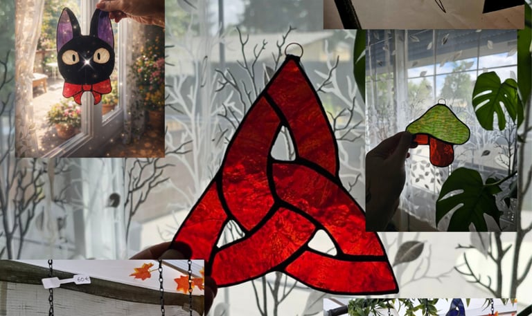 Le vitrail Tiffany est une technique qui permet de donner vie à mes créations. Chaque pièce de verre est découpée, enveloppée de cuivre puis soudée à la main afin de créer des formes délicates inspirées de la nature, des légendes et des mondes fantastiques. Cette méthode offre une grande liberté de création et permet de réaliser des objets lumineux et uniques, où la lumière révèle toute la magie et l'énergie de chaque création.